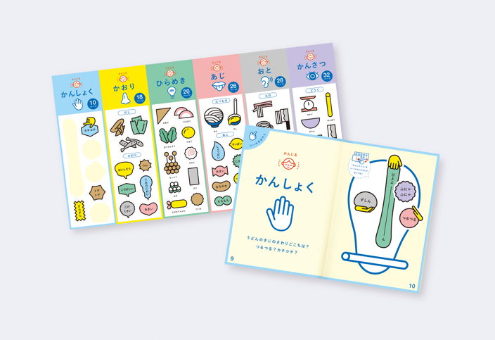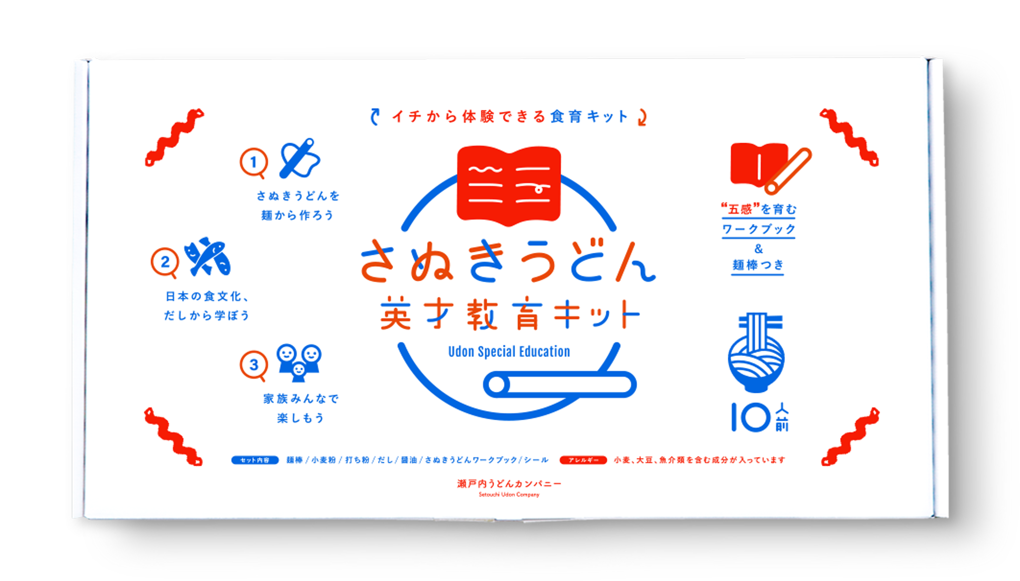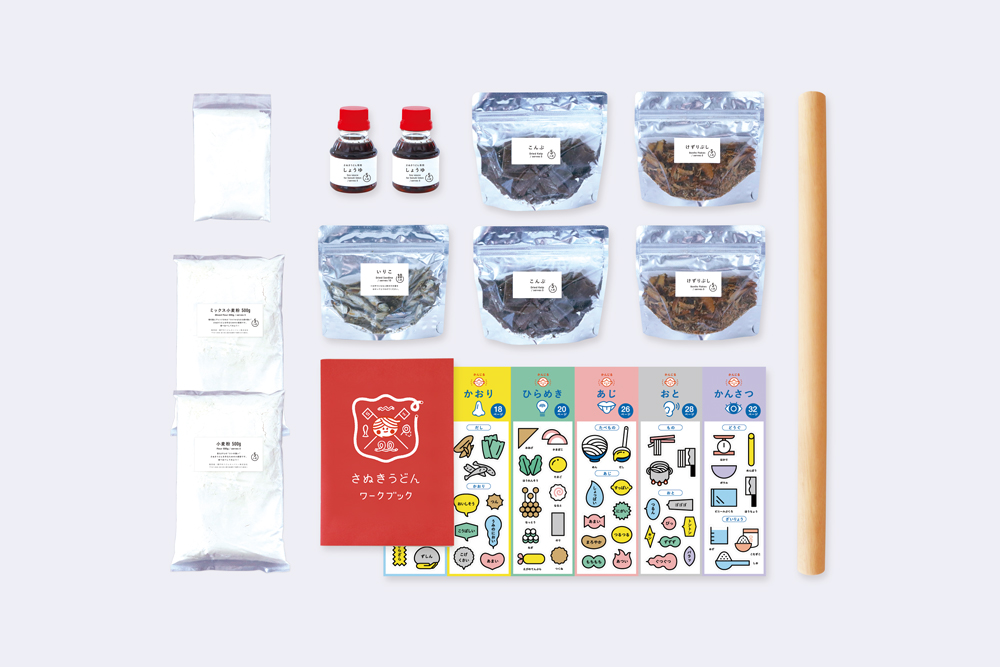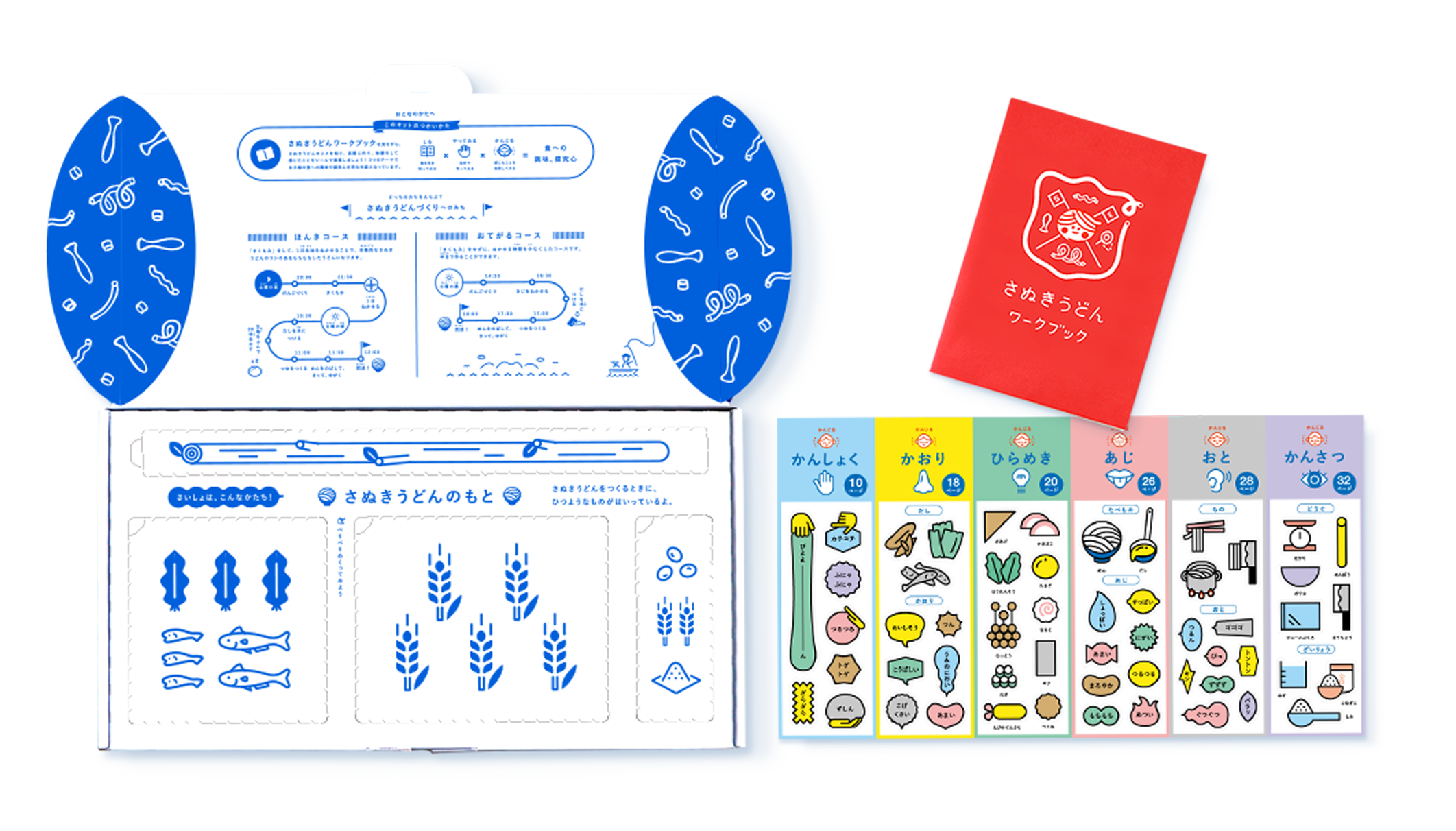 ワークブック&シール絵本のようなかわいいワークブックで学び、うどん作りで感じたことを付属シールから選んで貼って子どもの感性を育みます。 -