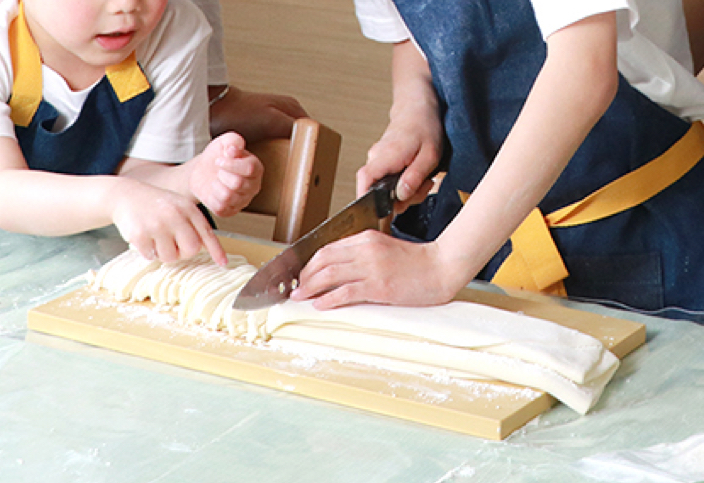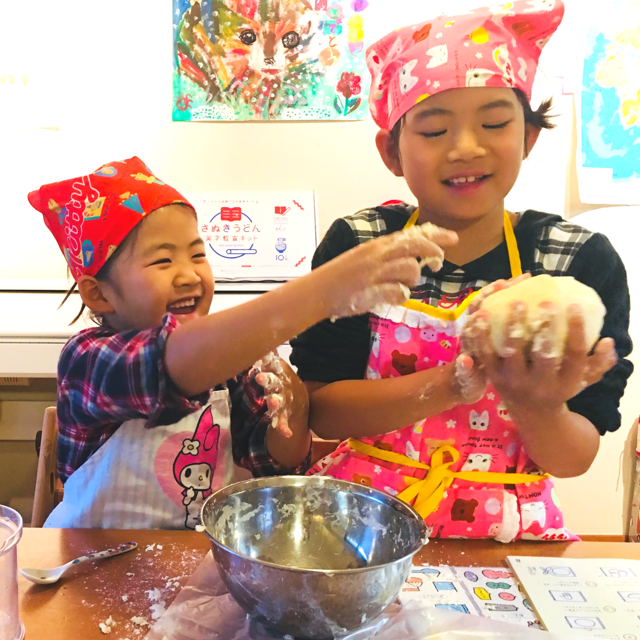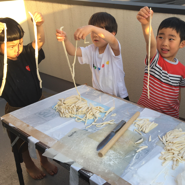 自分が何を思ったのか?どう感じたのか?という「気付き」を表現しながら、「うどん」を作り上げる。この過程の中で子供達は自分の「なんで?」「どうして?」を表現する術を知ることになり、そしてその気付きを「うどん」というアウトプットを組み立てる訓練をすることになるのです。子供の頃からこうした「思考力」を養う訓練ができるというのは、貴重な体験になるはずです。