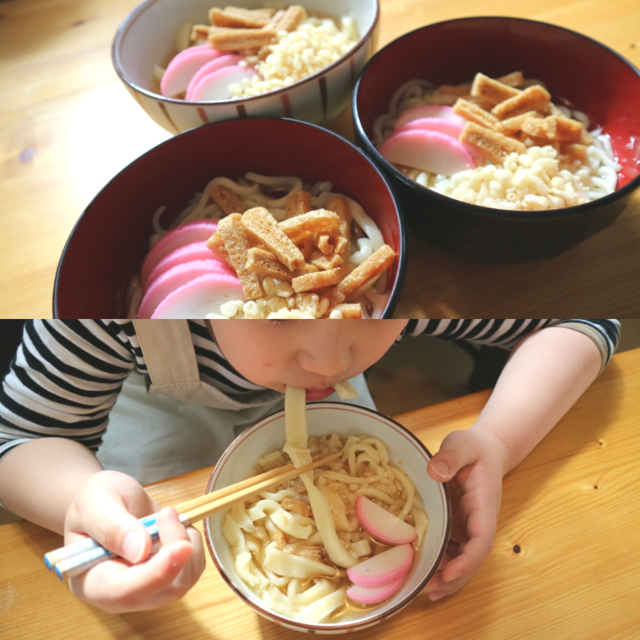 A8.うどんはやり込むと奥が深いですが、基本的には「小麦粉と水と塩を混ぜて団子にする→団子を伸ばして切る→茹でて食べる」という工程なので大失敗にはなりにくいです。太めのうどんになったり、うどんのはし切れを丸めて団子にしたり、お子様の感性に任せて作っても、自分で作ったできたてのうどんは格別なはずです。是非、トライしてみてください♪